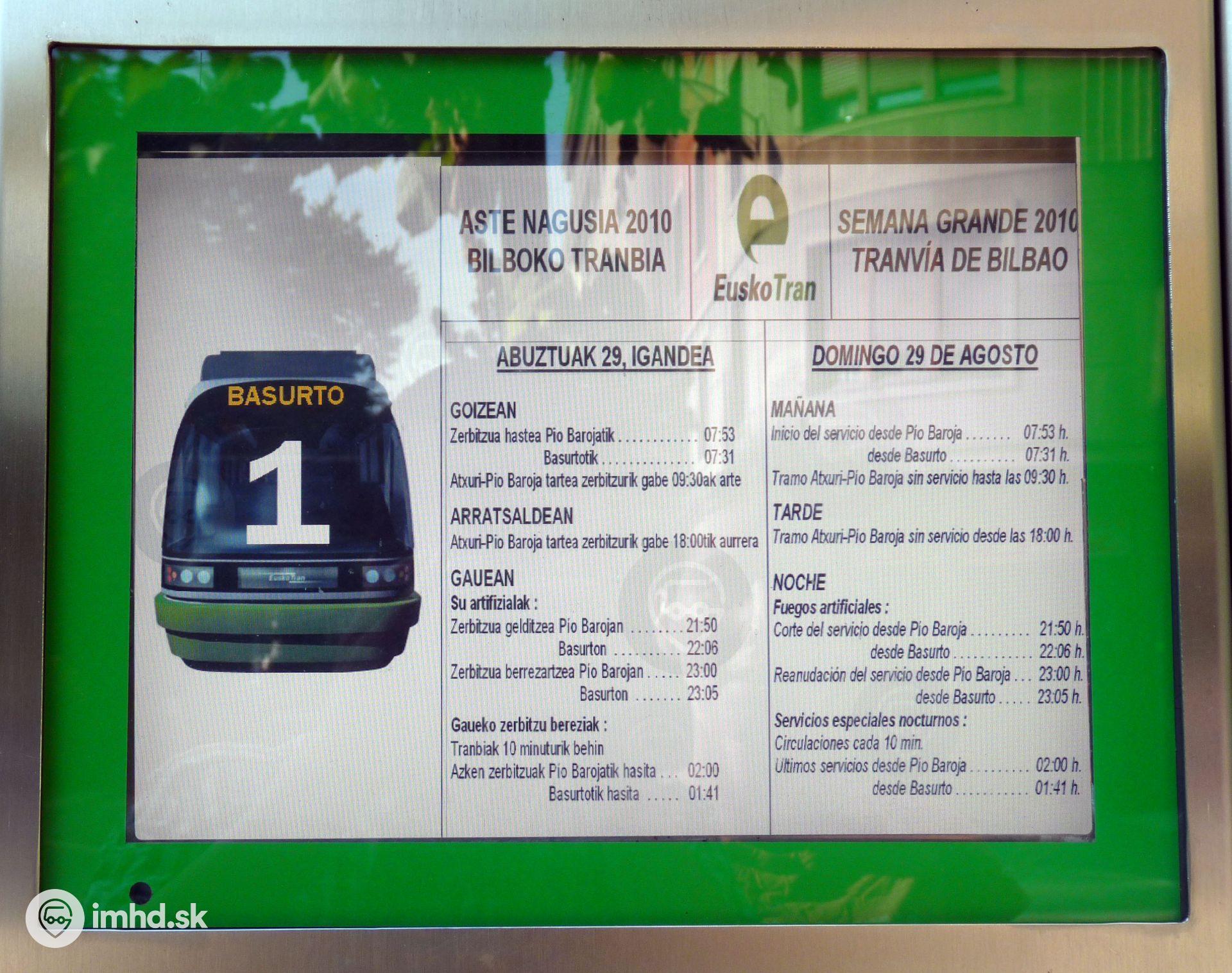 Dvojjazyčné informácie pre cestujúcich - baskicky a španielsky