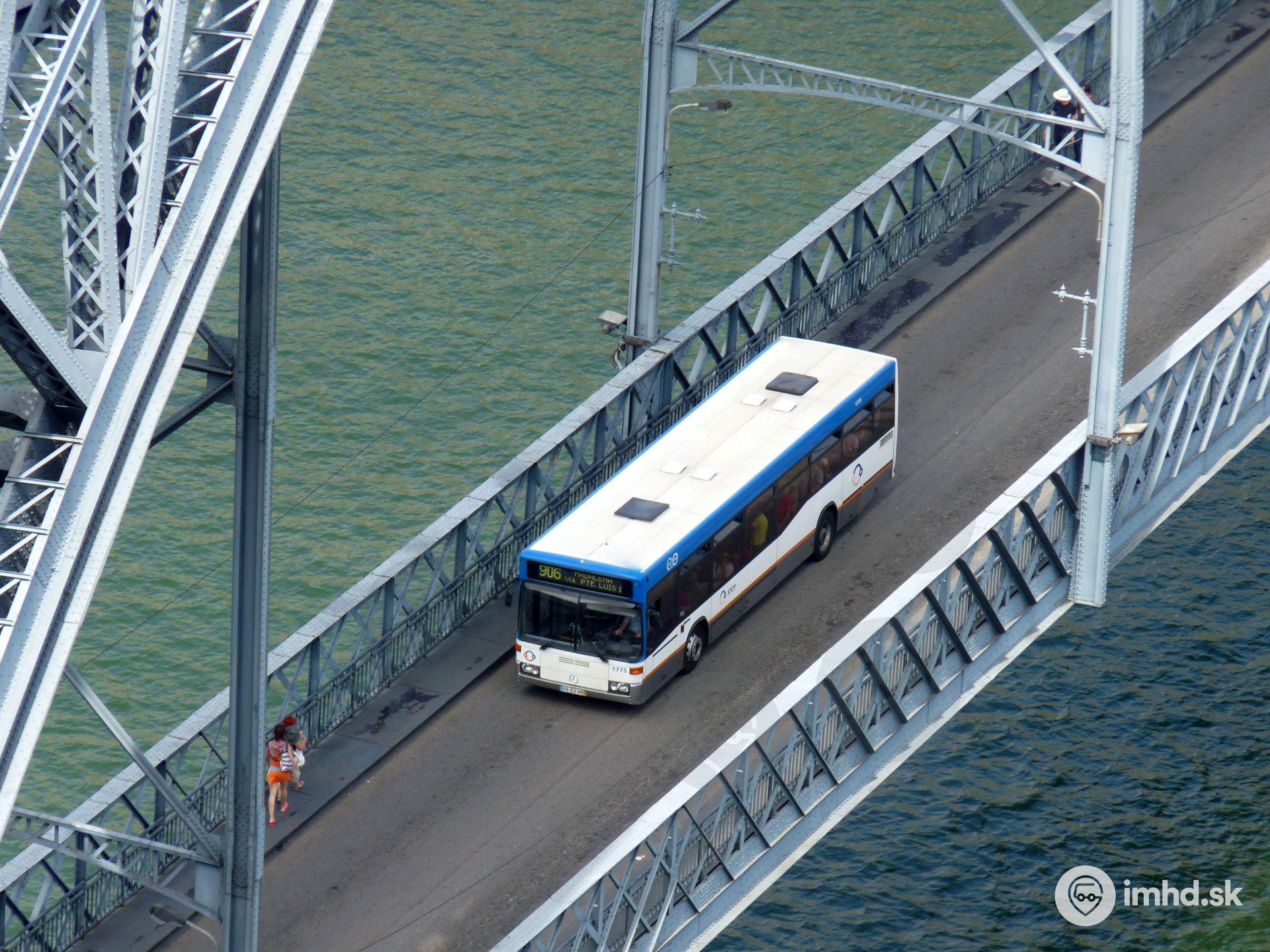 Mercedes-Benz O 405N2 / Camo Camus #1775 prechádza po spodnom podlaží mosta Ponte Luís I