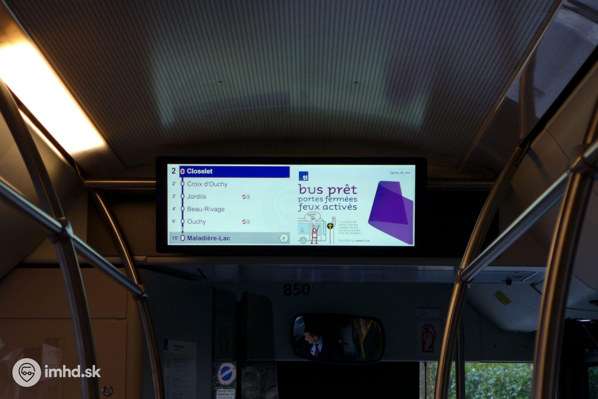 Trasa linky s trvaním cesty a self-promo na displeji vo vozidle