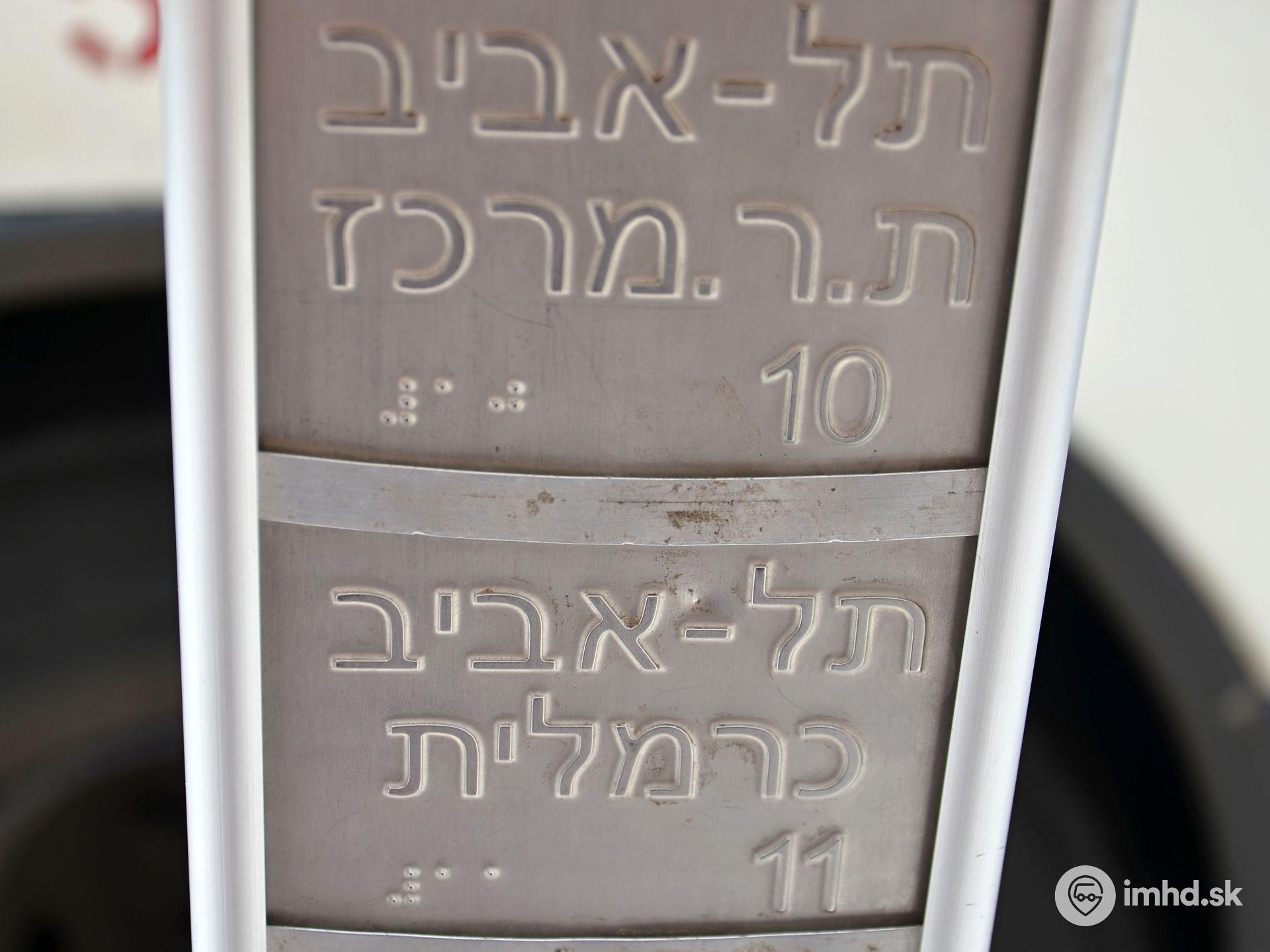 Informácie o autobusových linkách v hebrejčine s vystúpeným reliéfom