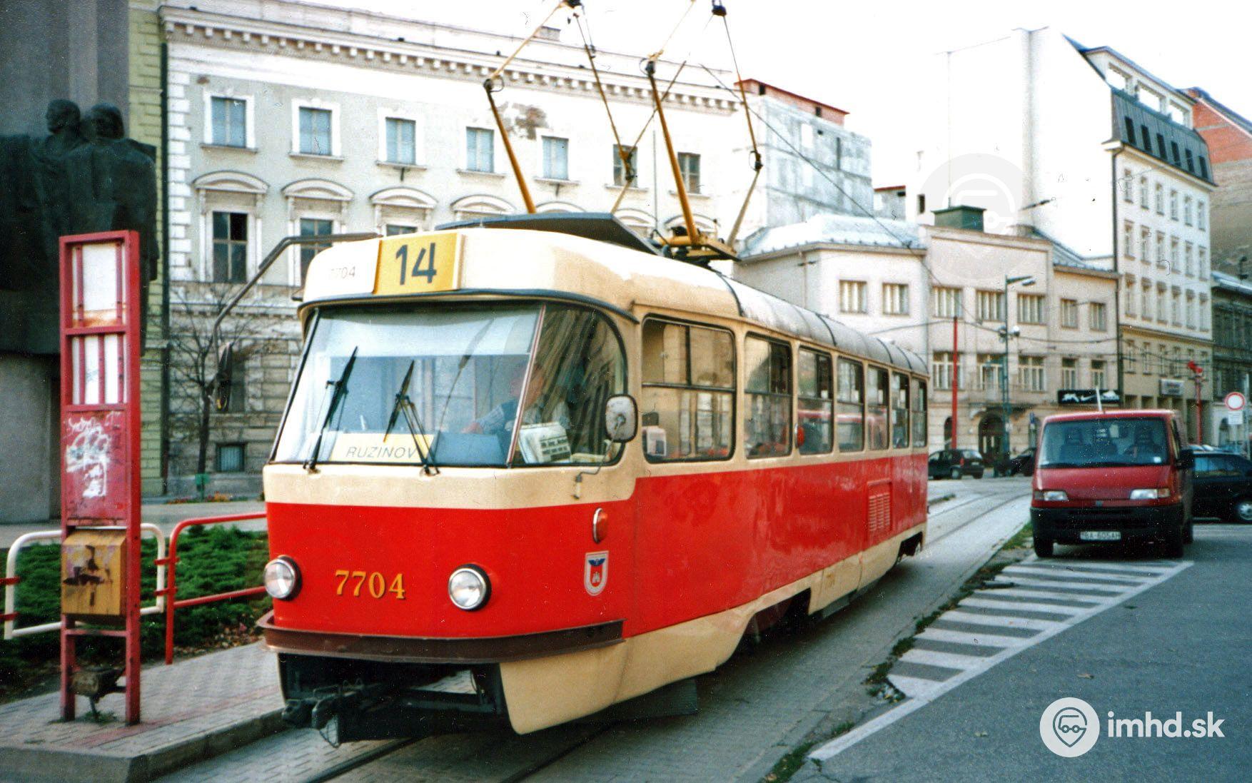 T3CS #7704 na mimoriadnej posilovej linke 14 počas výluk na Radlinského ulici a pri tuneli.