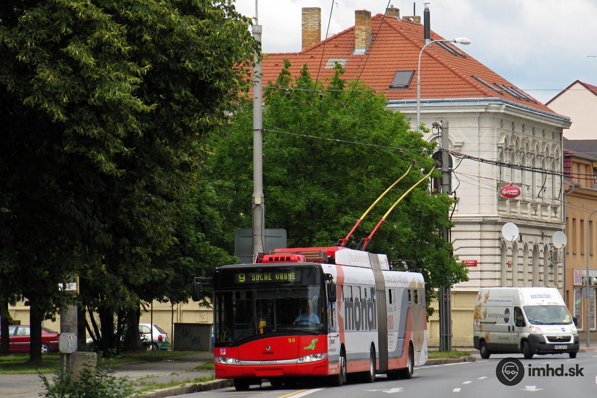 #90, route 9, Pražská tř., zastávka U Trojice