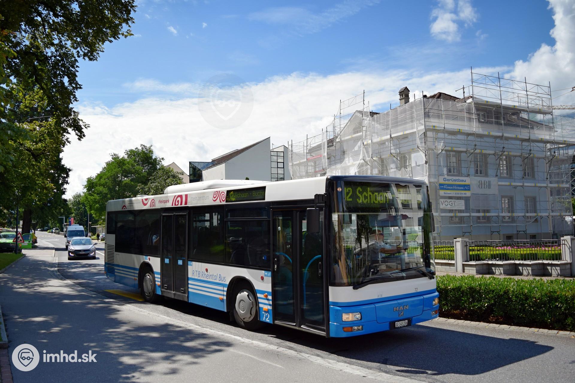 MAN A22 švajčiarskeho dopravcu RTB Rheintal Bus v uliciach hlavného mesta Lichtenštajnska