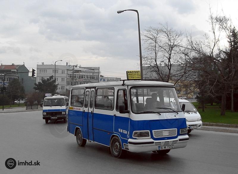 Minibusy, tzv. dolmuše, patria k obľúbenej forme dopravy aj v tureckej Burse (12.2.2006)