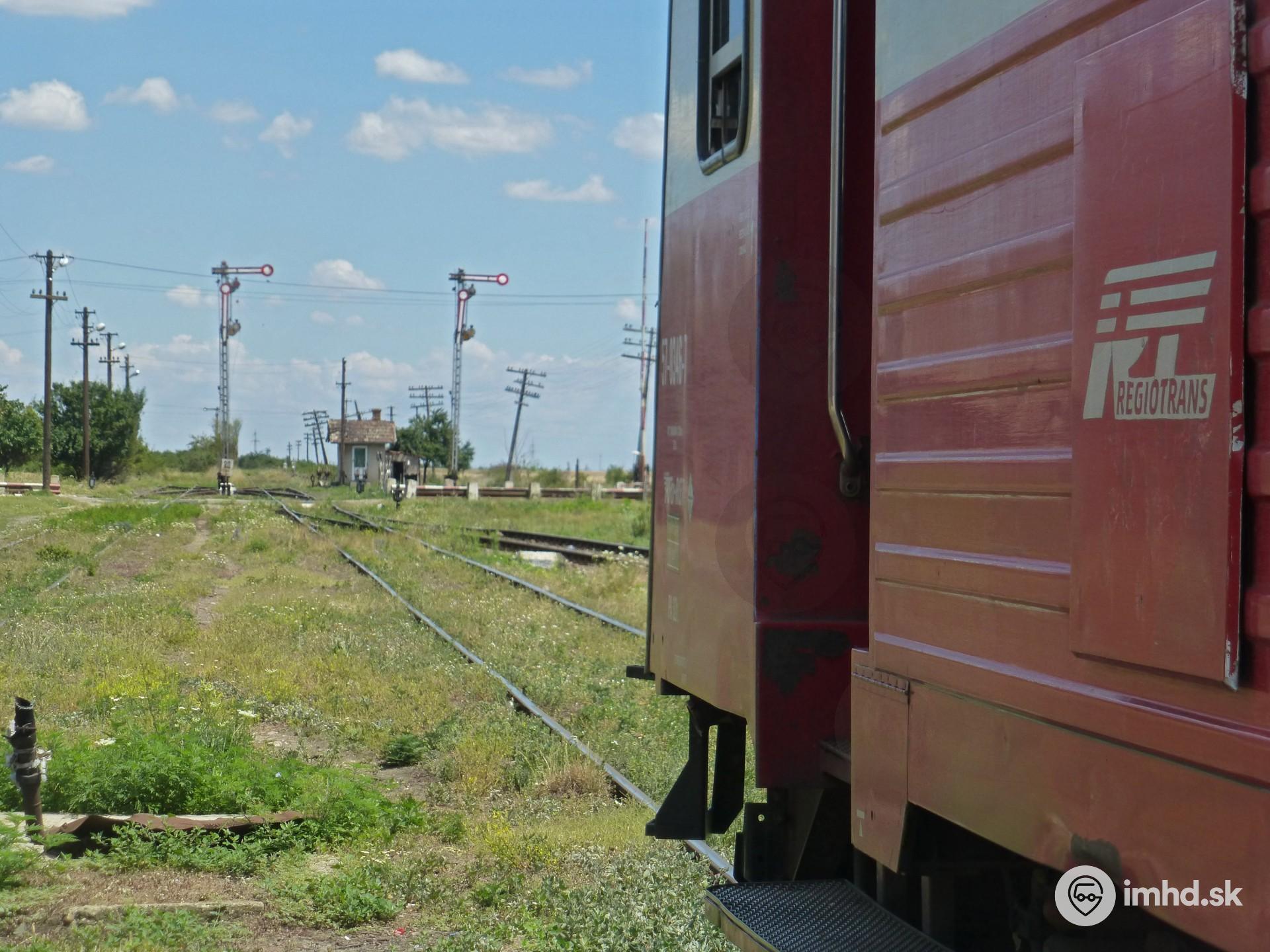Logo dopravcu Regiotrans a pohľad na Aradské zhlavie