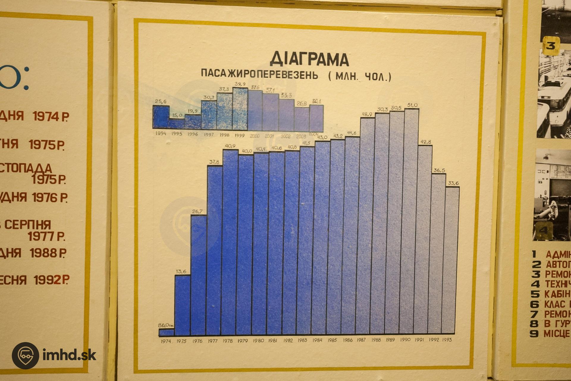 Graf počtu prepravených pasažierov. Zatiaľ čo v roku 1990 bolo prepravených za rok 51 miliónov osôb, 5 rokov neskôr to bolo len 15 miliónov.