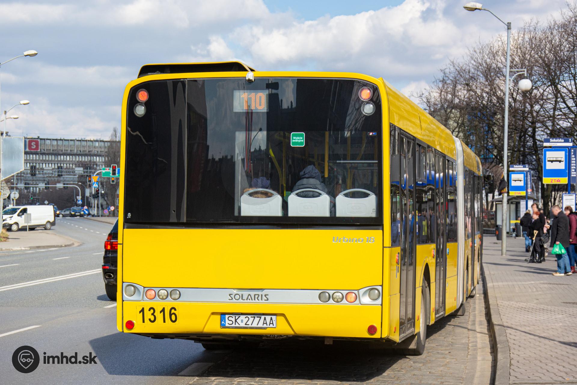 Solaris Urbino 18 III #1316 prichádza do zastávky Sokolska.