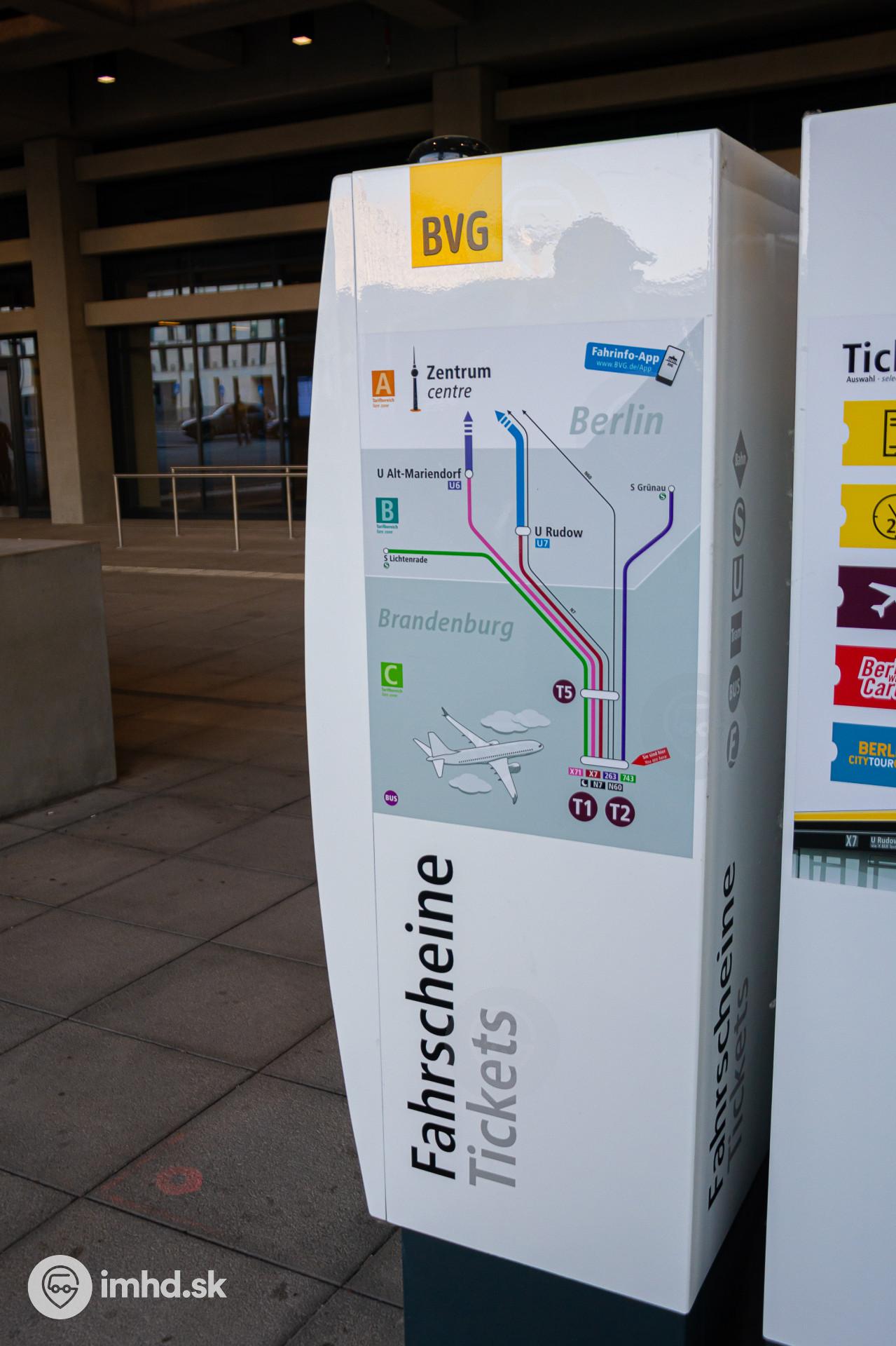 Schéma liniek do centra mesta z letiska Berlin Brandenburg.