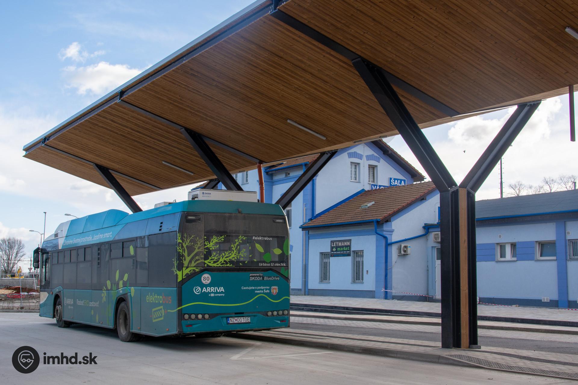 Solaris Urbino 12 electric / Škoda 26BB HE na novej autobusovej stanici v Šali.