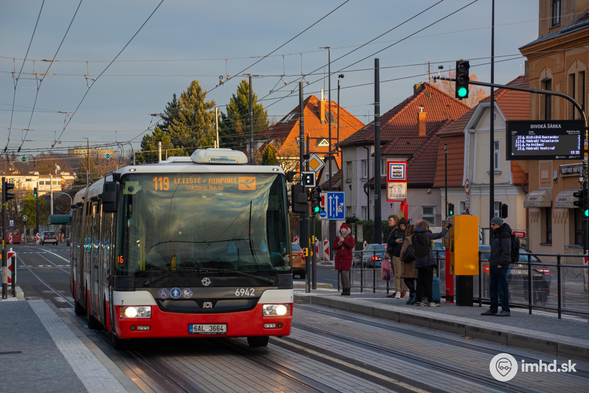 #6942, 6AL 3664, route 119, Evropská ul., zastávka Divoká Šárka