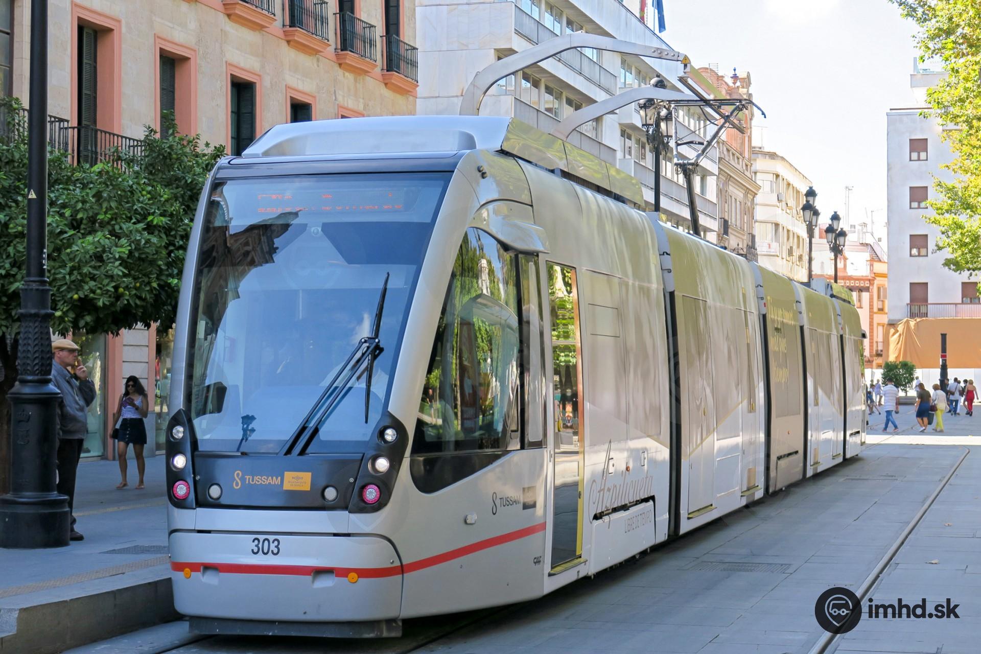 Električka CAF Urbos 3 #303 na konečnej Plaza Nueva.
