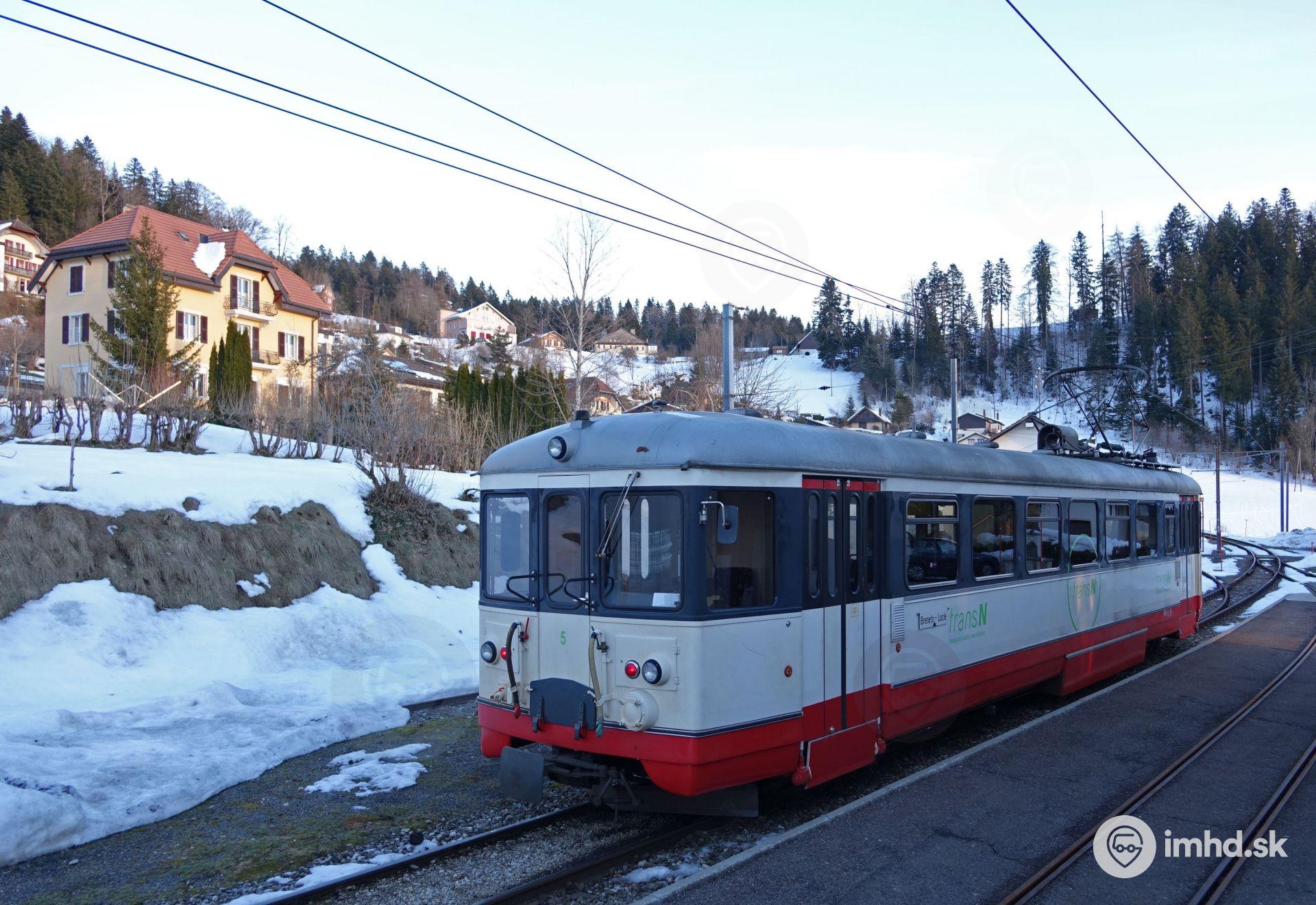 Vozeň Reggiane / TIBB / SAAS BDe 4/4 na konečnej Les Brenets.