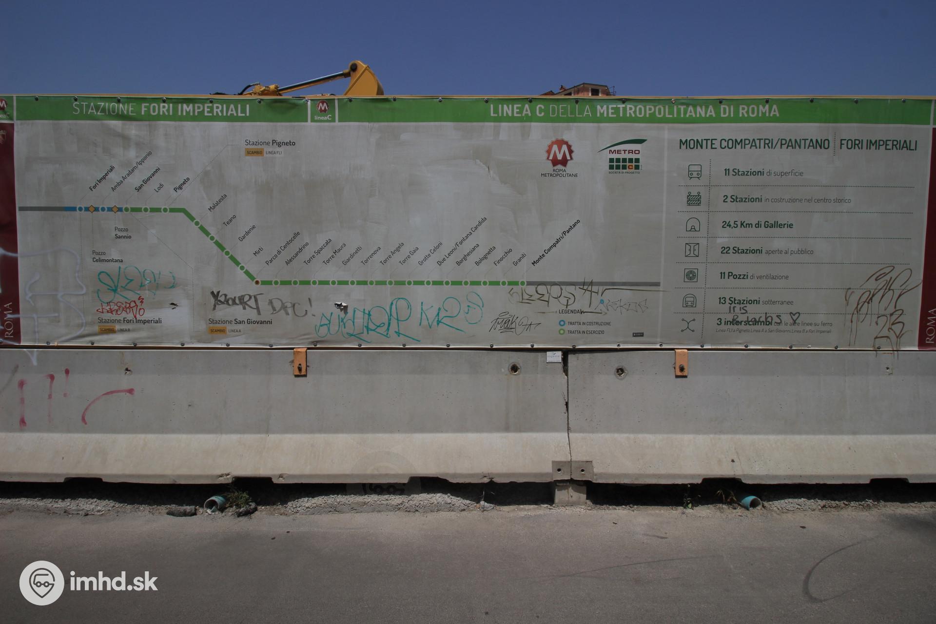 Informačný panel k výstavbe práve prebiehajúceho predĺženia metra C