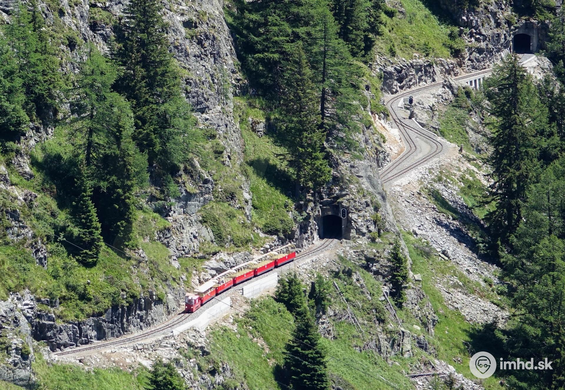 Železnička k priehrade Emosson pripomína modelovú železnicu.