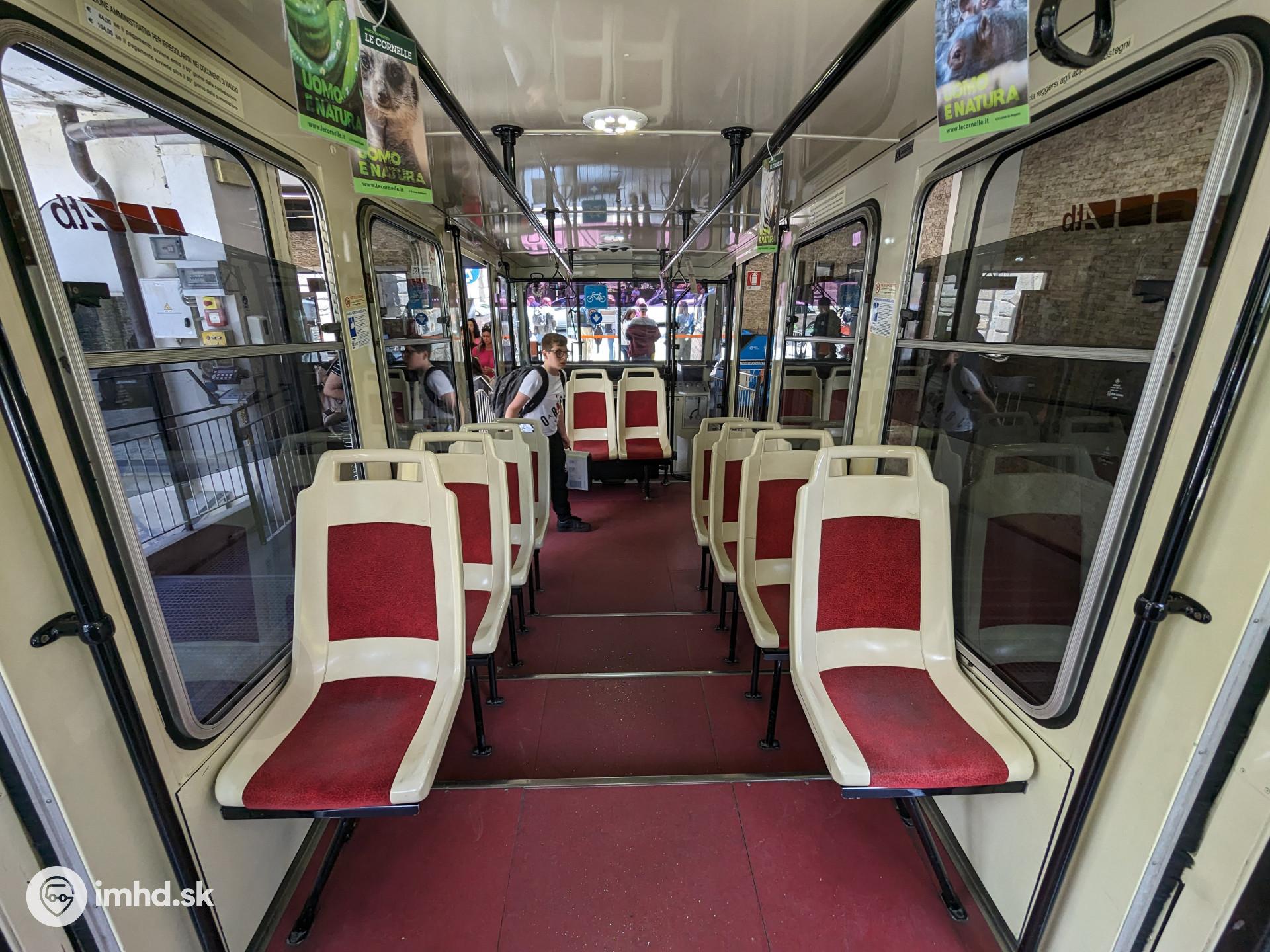 Interiér vozňa lanovky na San Vigilio.