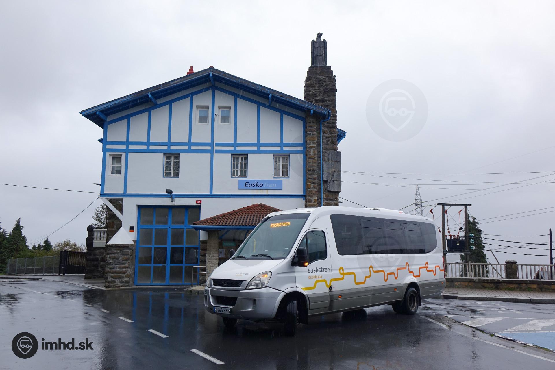 Nadväzný minibus pri hornej stanici lanovky Larreinetako funikularra.