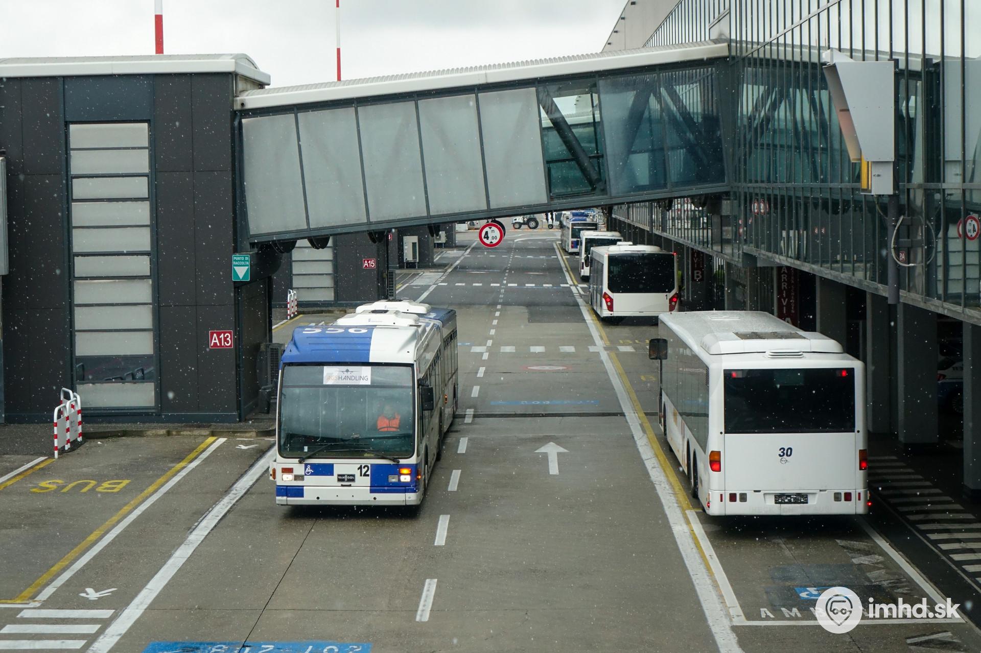 Letiskové autobusy (Van Hool AG300 #12 je pôvodom z Lausanne - ex #556) v krupobití.