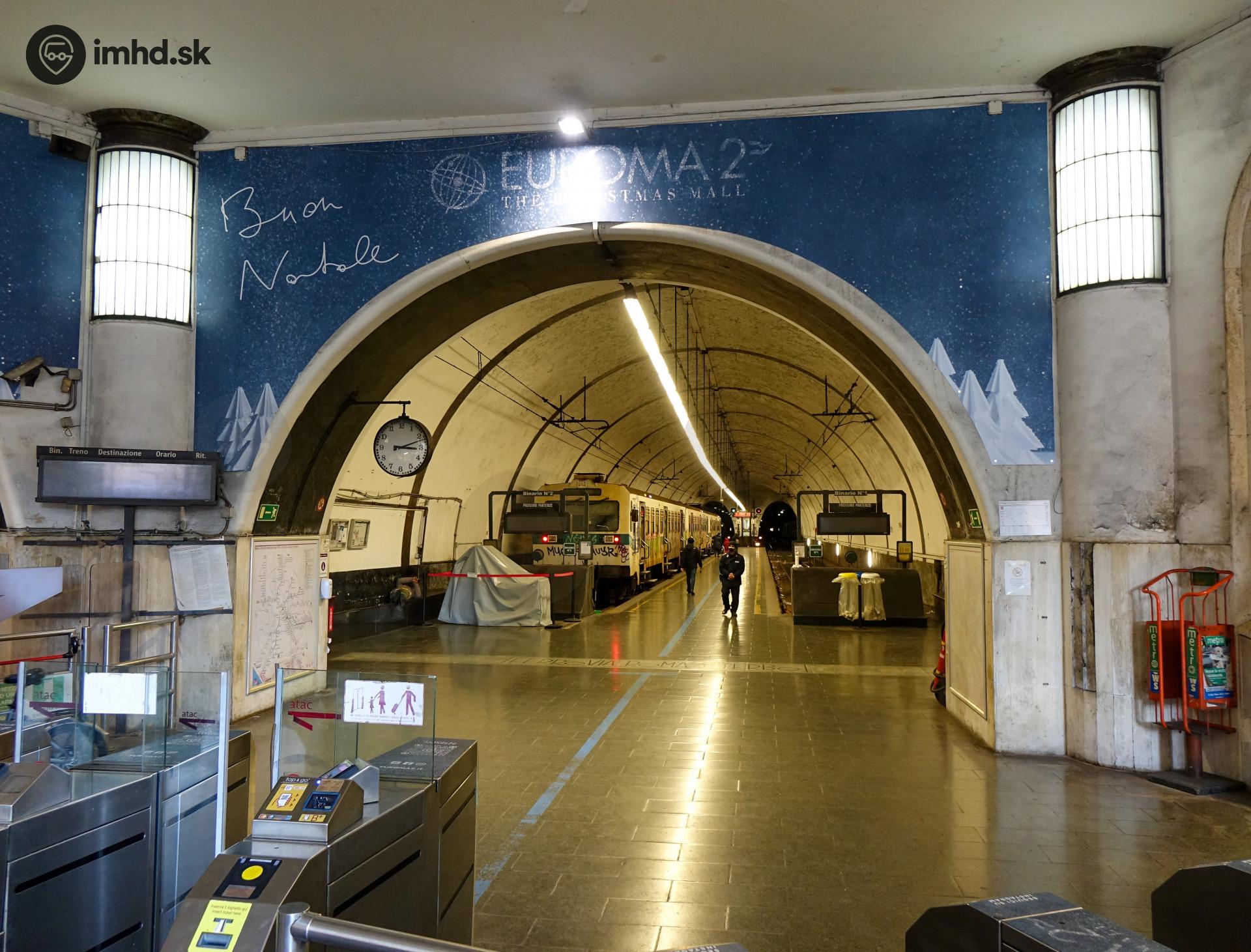Vestibul a nástupištia stanice Flaminio sprevádzkovanej v roku 1932 pre regionálne vlaky.