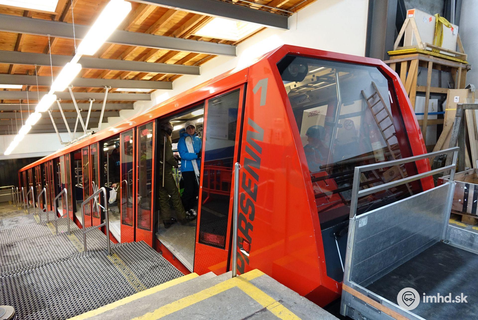 Súprava dvoch vozňov Doppelmayr/Gangloff z roku 2002 v spodnej časti 1. úseku lanovej dráhy Davos Dorf - Parsenn