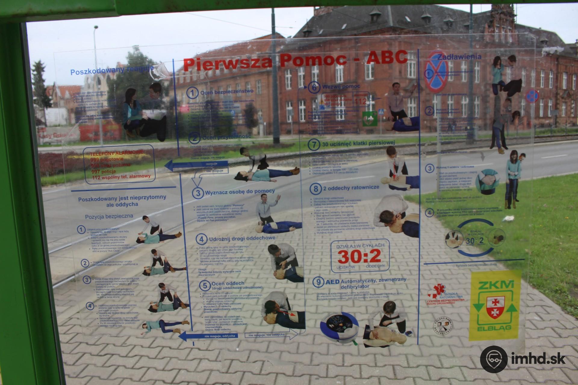 Návod na prvú pomoc na stene zastávkového prístrešku