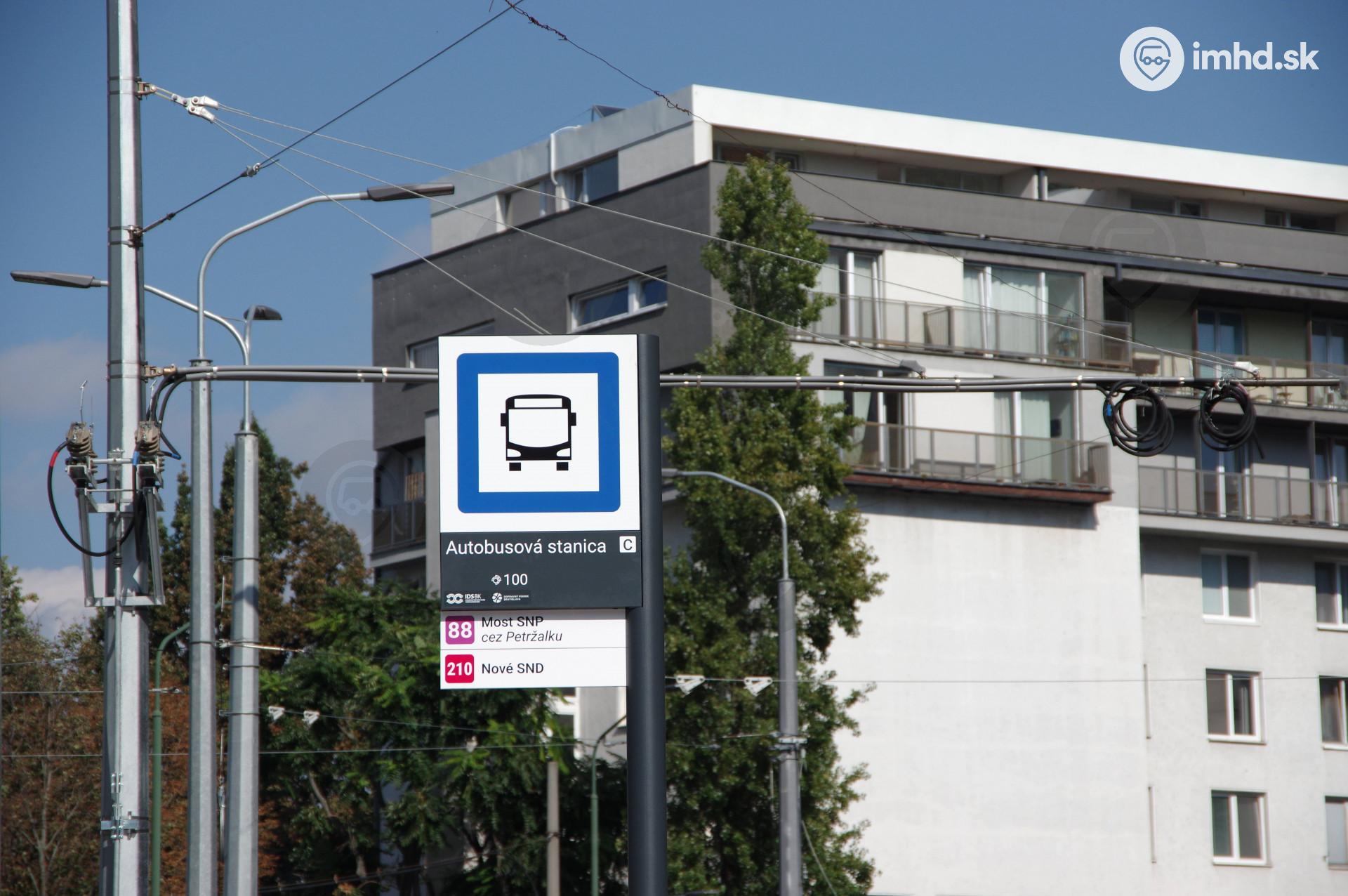Označník nástupišťa liniek 88 a 210.